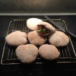 - Kjevle ut hver bolle til ca 1/2 cm tykke
